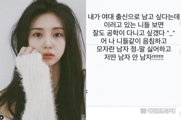 '미달이'로 대중에게 알려진 배우 김성은(34)이 '래커(락카) 시위' 등을 벌이며 학교 측의 남녀공학 전환 논의 철회 등을 요구한 일부 동덕여자대학교 재학생들을 저격하는 글을 사회관계망서비스(SNS)에 올렸다.